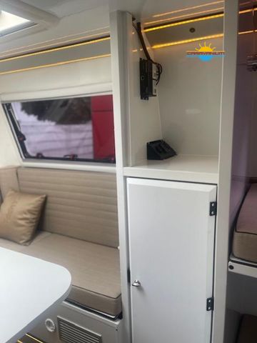 Fliegengitter Eingangstür Reserveradhalter mit Ersatzrad Mover P1 2000 Kg Truma Saphire -Klimaanlage /AC Einstiegsstufe manuell V 16 Double Step Big Foot Stützen Thule Markise 4x2,5 m Gehäuse schwarz rechts Thule Markise 4x2,5m Gehäuse schwarz links City Wasser Anschluß Smart Control Tablet Camppass Energiepaket 2 (200Ah Battery-pack/375W Solarpanel/15 AH MPTT/Ladegerät/1000 W Inverter (Umwandler)) 4x Steckdosen zusätzlich im 1x Bad/ 1x Sitzecke /2xKüche Antischlingerkupplung (Alko - Antischlingerkupplung/ Caravan Stabiliserung) Zusätzliche 4 m LED -Leiste Elektrische Seilwinde Zusätzliche Außensteckdose 2x 2x MSP 200 Sun Dock 200 Solar Watt Panel Großes Küchenfenster ALKO Enduro Fahrwerk Zelt Außendusche Ladegerät vom Zugfahrzeug Wohnwagenschürze/Leiste Zusatzfenster bei oberem Stockbett EACTIVE ACUBOX 300 S Zusätzliche Leselampe 2x Vollautomatische TV-Satanlage Ten Haaft Oyster Multimedia Paket Pro , V85 Premium Sat-Anlage Twin Skew + Smart TV 24"+ Internetantenne Access Clesana C1 Toilette mit L Adapter Größere Box mit extra großen Türen Sondermodell mit sehr vielen Extras!!! Finanzierung ab 4,99% möglich bis zu einer Laufzeit von 180 Monaten Gerne nehmen wir auch Ihr Fahrzeug Inzahlung